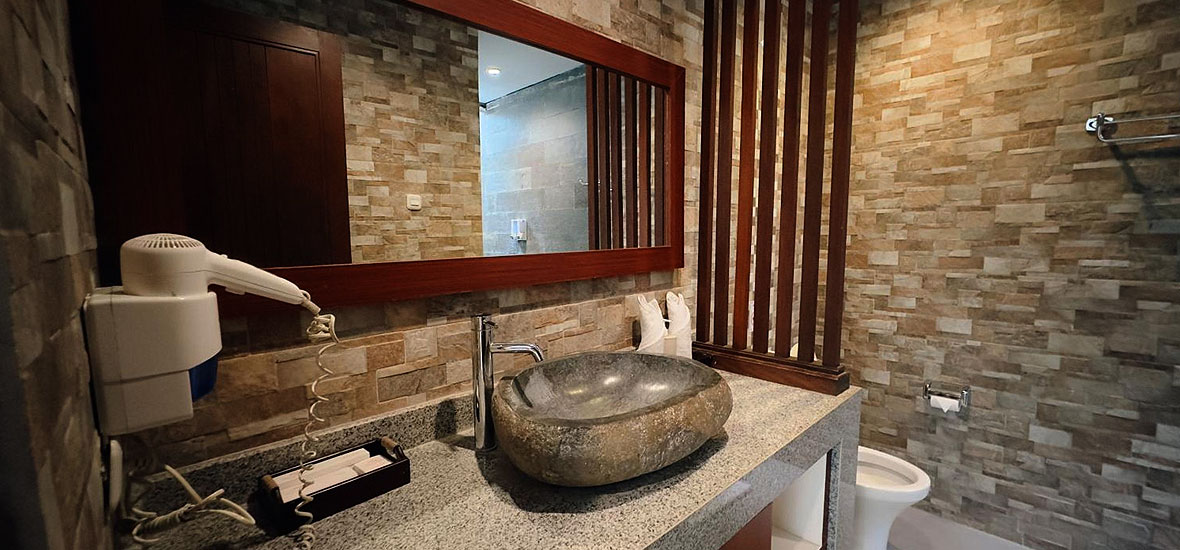 Measure 30 sqm in size, this air conditioner suite room come with 1 double bed, an en-suite bathroom with shower facilities, and balcony/terrace with view.